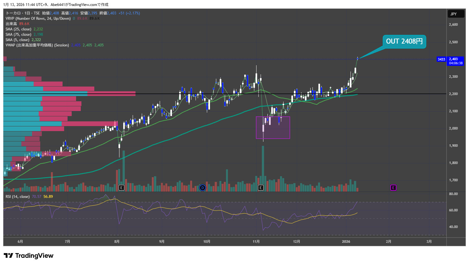 今日は予定通り、朝の寄付きで動きました。 保有していたトーカロ(3433)を全て売却しました。