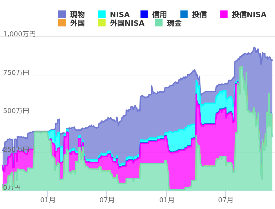 - 現在(2025年11月): 約1,100万円(画像の資産と別口座に250万円)