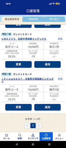 その上で、今後の値動きの激しさ(ボラティリティ)に対応するために、クレジットカード積立で毎月各1万円(計2万円)の設定も行いました。