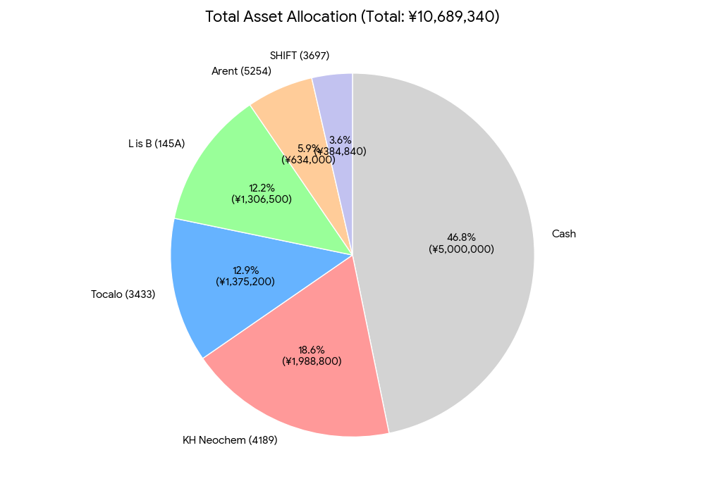 まず、以前から監視していたアレント(5254)を約60万円分、打診買いしました。 そして、予定外ではあったのですが、シフト(3697)も約40万円分購入しました。