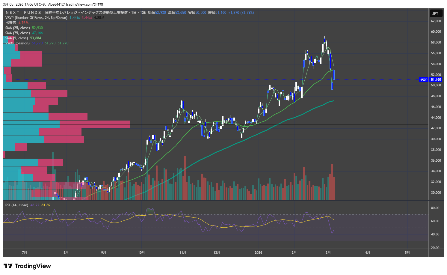 チャートから見る立ち位置:日経レバレッジ(1570)のRSIは46